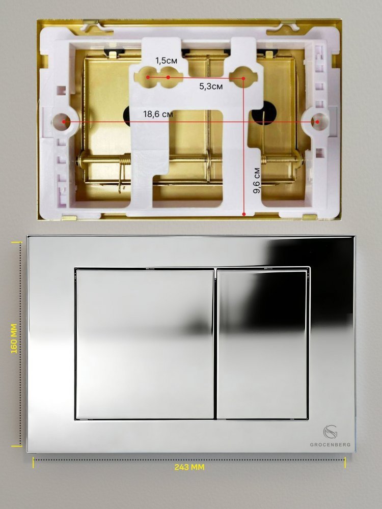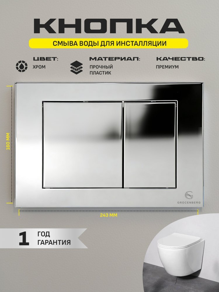 - Кнопка смыва для унитаза GROCENBERG KP3080CR хром — это не просто деталь для вашего туалета, это заявление о вашем стиле и заботе о доме. Элегантный хром придаёт вашей ванной комнате современный вид, который будет радовать глаз каждый день.