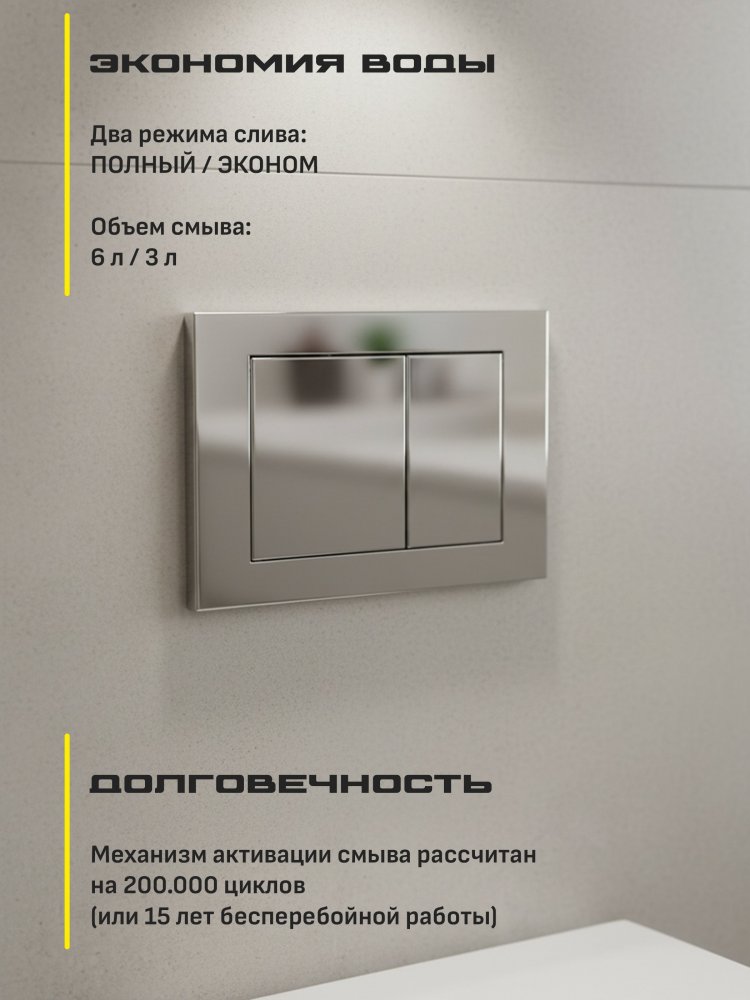 - Этот пластиковый механизм отличается надёжностью и долговечностью, что гарантирует вам экономию на замене деталей в будущем. Простое управление и эффективный смыв делают его идеальным выбором для тех, кто ценит комфорт и качество.