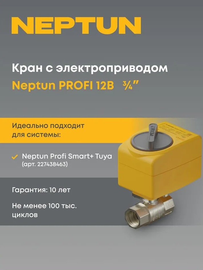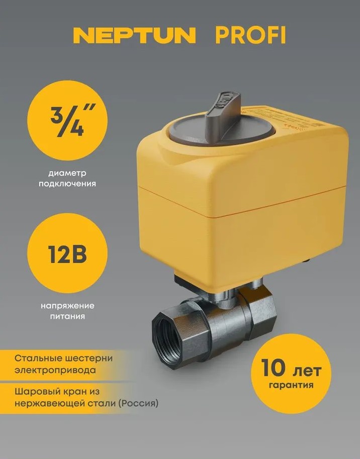 Кран шаровой с электроприводом Neptun PROFI 12В 3/4 Нептун Профи 100035685400.