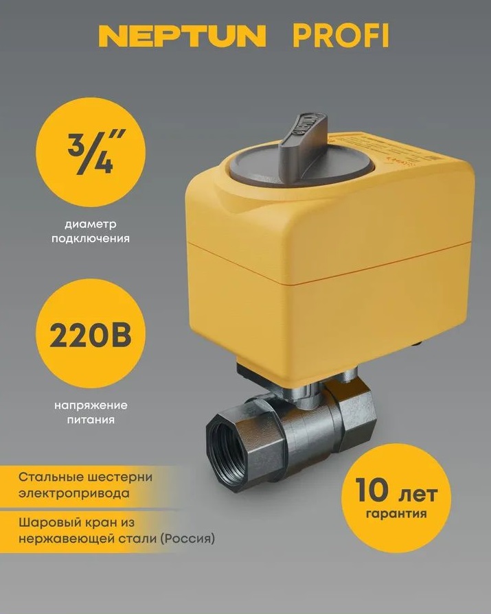 Кран шаровый с электроприводом Neptun PROFI 220В 3/4" 100035693400.