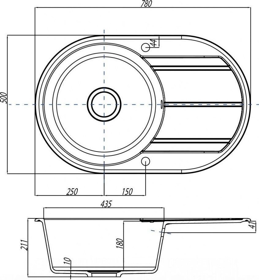 Пример: Внешний размер мойки - 800х500 мм. Размер отверстия под данную мойку 780х480 мм.