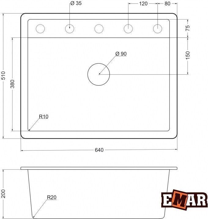 Кухонная мойка Emar EMQ-1640.Q, барит
