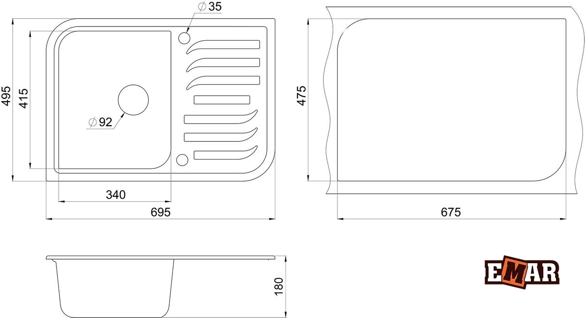 Характеристики мойка для кухни Emar (EMQ-1695.Q Антрацит)
