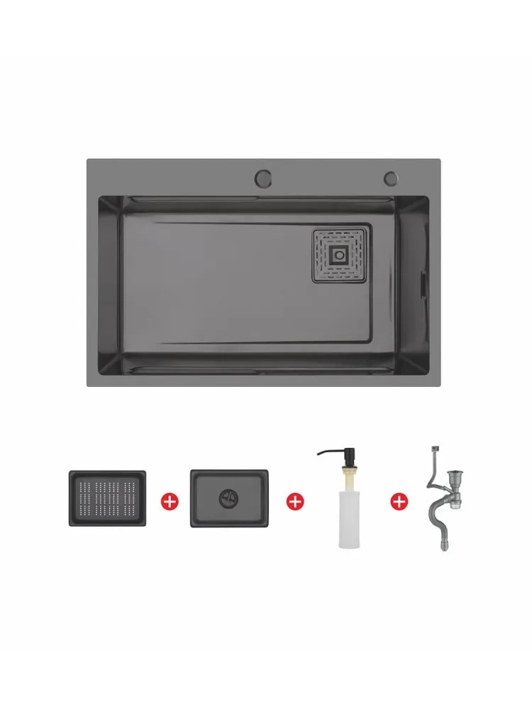 Кухонная мойка Gerhans K37246B, материал нержавеющая сталь. Цвет графит. Коландер, сифон и диспенсер в комплекте.