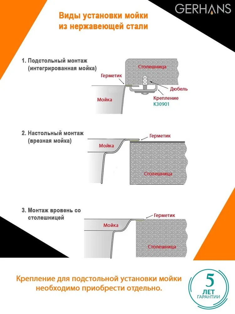 Данный параметр подразумевает, что мойки будут устанавливаться поверх столешницы.