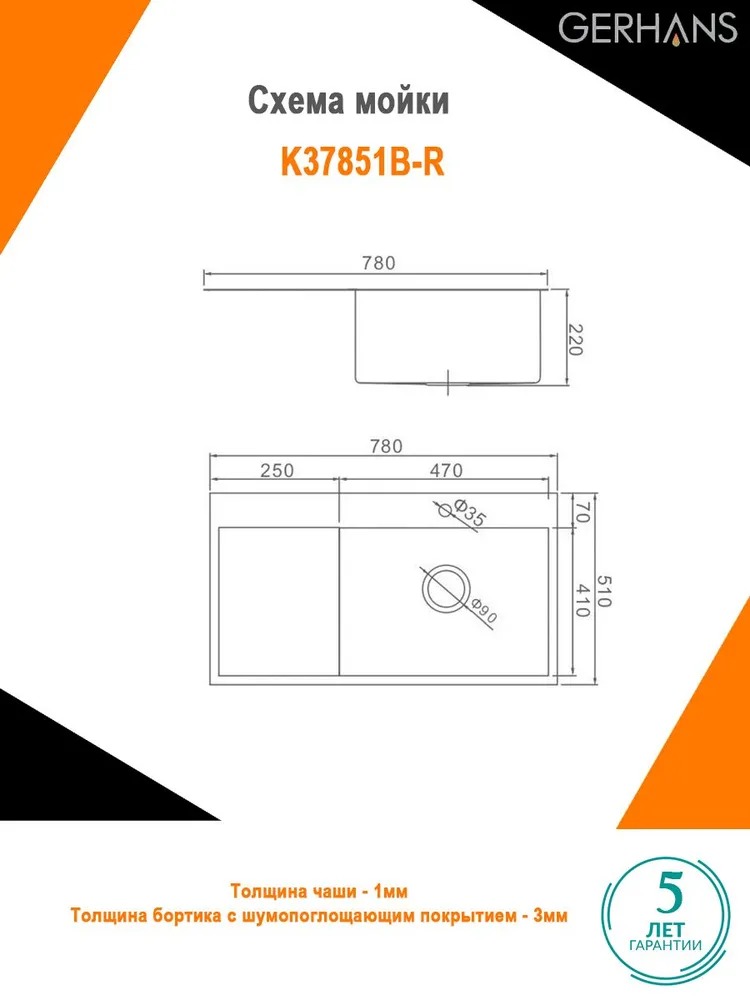 Характеристики мойка для кухни Gerhans (K37851B-R)
