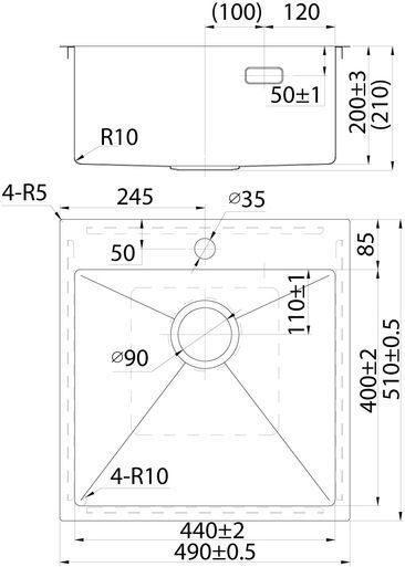 Врезная установка - способ установки, при котором в столешнице вырезается отверстие под размер мойки. Данный параметр подразумевает, что мойки будут устанавливаться поверх столешницы. Как правило размер отверстия под мойку на 2 см (20 мм) меньше внешнего размера мойки. Пример: Внешний размер мойки - 800х500 мм. Размер отверстия под данную мойку 780х480 мм.