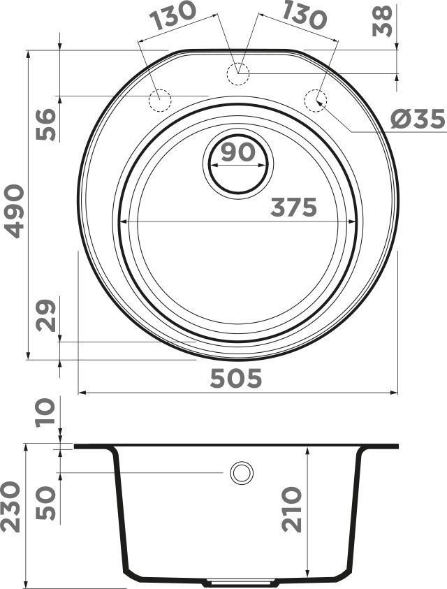 Врезная установка - способ установки, при котором в столешнице вырезается отверстие под размер мойки. Данный параметр подразумевает, что мойки будут устанавливаться поверх столешницы. Как правило размер отверстия под мойку на 2 см (20 мм) меньше внешнего размера мойки. Пример: Внешний размер мойки - 800х500 мм. Размер отверстия под данную мойку 780х480 мм.