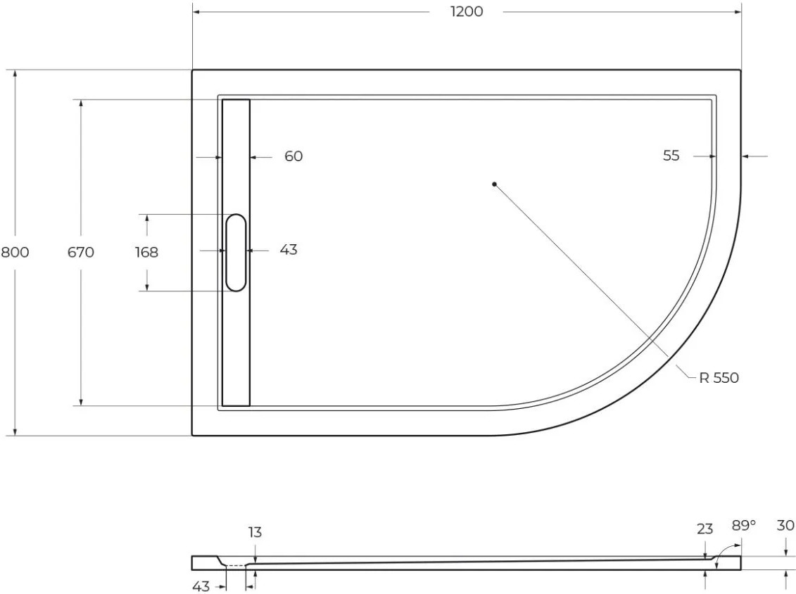 Описание Поддон Cezares TRAY-AS-RH-120/80-30-W-L