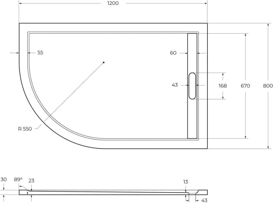 Описание Поддон Cezares TRAY-AS-RH-120/80-30-W-R
