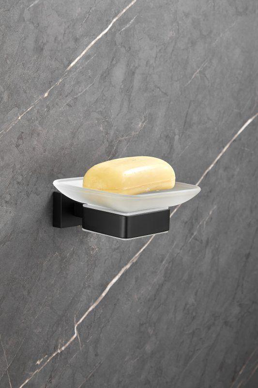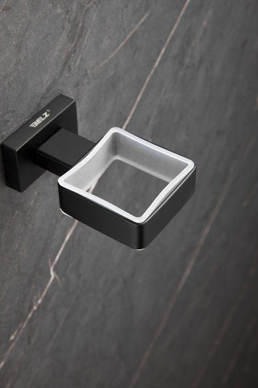 Мыльница Belz B90302 с настенным держателем, материал нержавеющая сталь/стекло, цвет чёрный матовый.