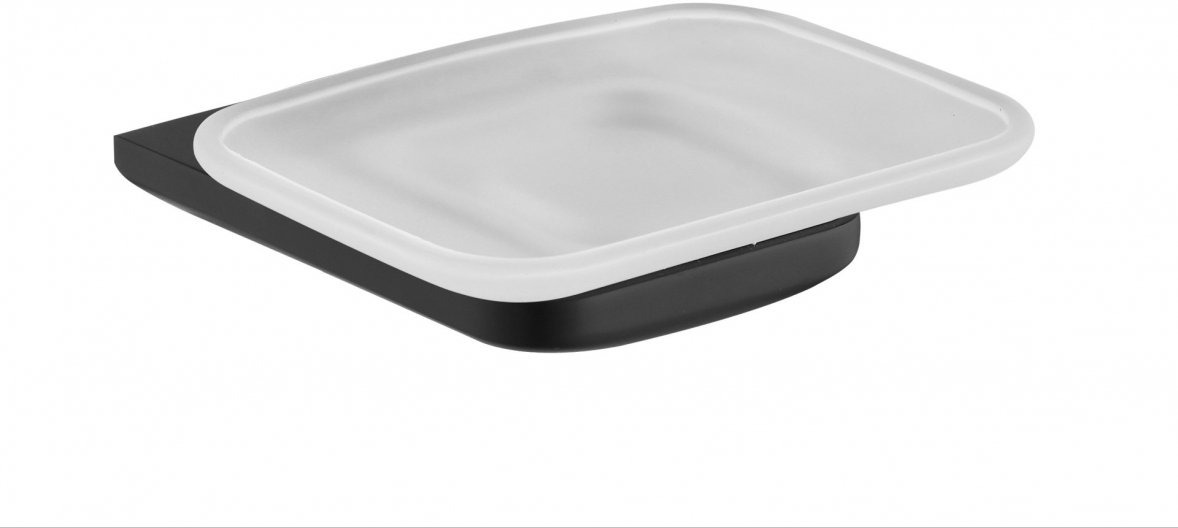 Мыльница Grocenberg AC0058BL, с настенным держателем, материал латунь/стекло матовое, цвет чёрный матовый.