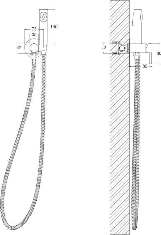 Набор для гигиенического душа Belz B55804-3 со скрытой частью, материал латунь, цвет оружейная сталь.