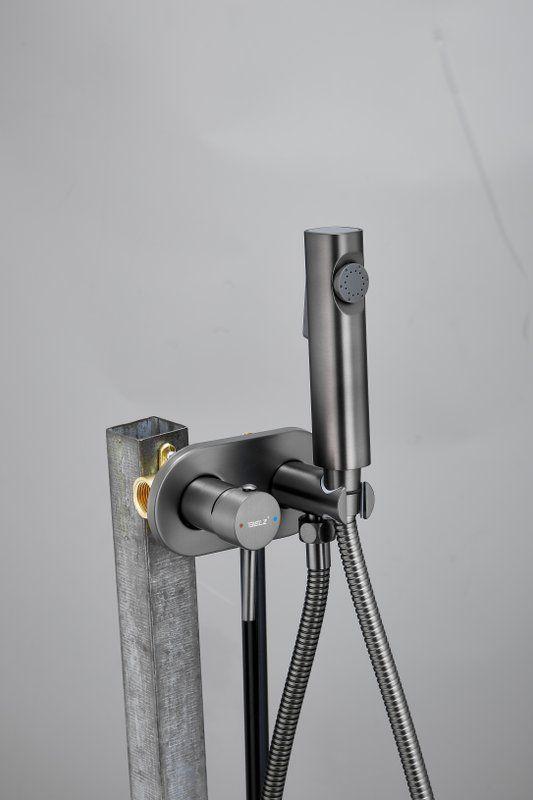 Набор для гигиенического душа Belz B55807-3 со скрытой частью, материал латунь, цвет оружейная сталь.