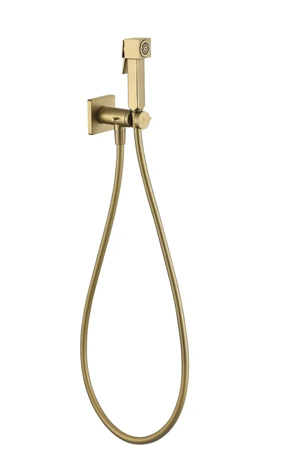 Набор для гигиенического душа Grocenberg GB005MG со скрытой частью и прогрессивным картриджем, материал латунь, цвет матовое золото.