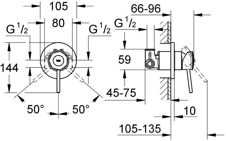 Набор для гигиенического душа Grohe BauCurve 129186, материал латунь, цвет хром.