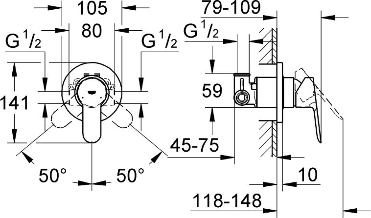 Набор для гигиенического душа Grohe BauEdge 129188, материал латунь, цвет хром.