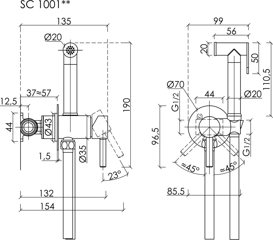 Набор для гигиенического душа Sancos Start SC1001MB, чёрный матовый (скрытая часть)