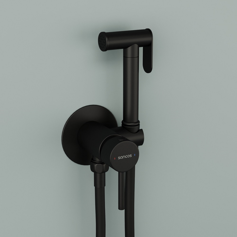 Набор для гигиенического душа Sancos Start SC1001MB, чёрный матовый (со скрытой частью) - фото