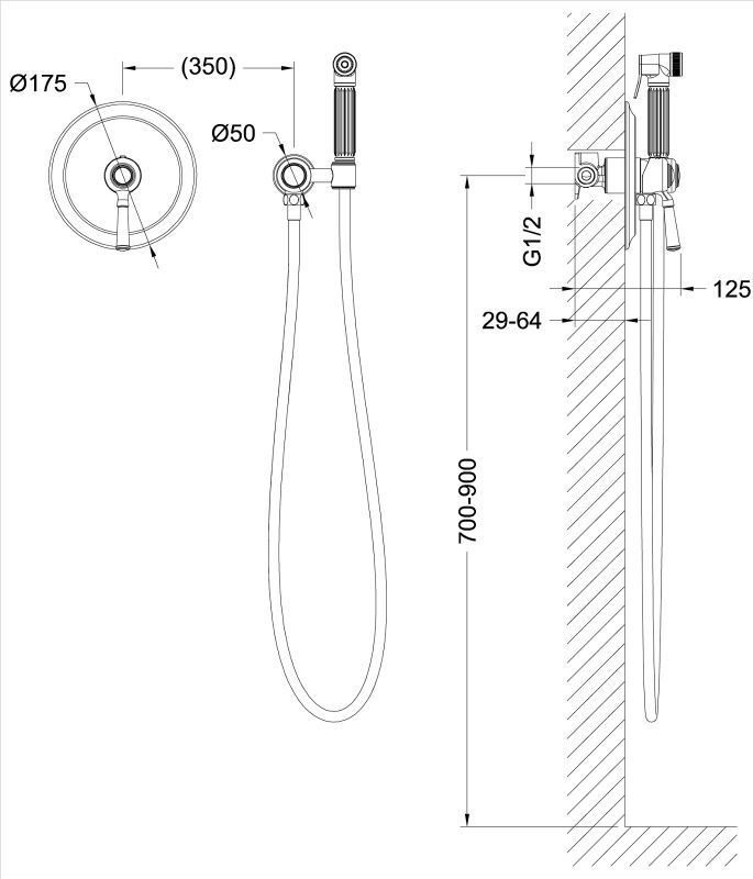 Набор для гигиенического душа Timo Arisa 5309/03SM, со скрытой частью, материал - латунь, цвет - черный матовый.
