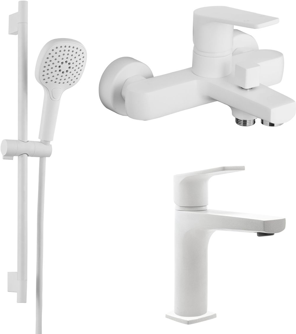 Набор смесителей 3 в 1 для ванны Azario Treya AZ-156805126+AZ-156845026+AZ-157820226, белый матовый