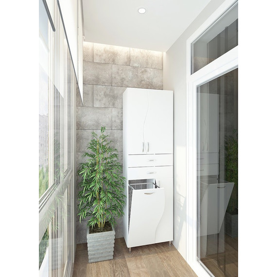 Пенал напольный EvaGold ТМ 600х1900х325 мм, с бельевой корзиной и ножками, цвет белый.