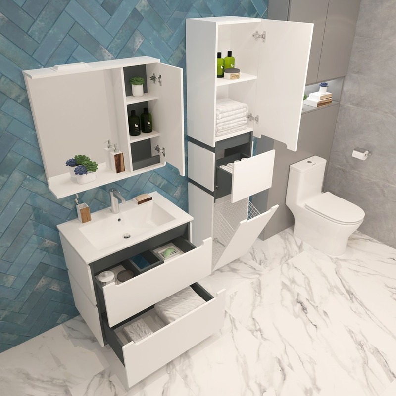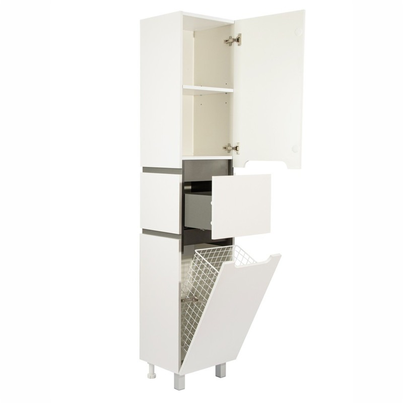 Пенал напольный EvaGold Vesta EG010420 400х1900х335 мм, с бельевой корзиной и ножками, цвет белый/графит.