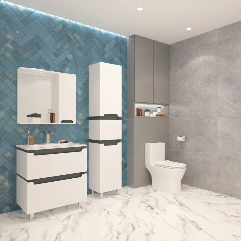 Пенал напольный EvaGold Vesta 40 см EG010420, белый/графит
