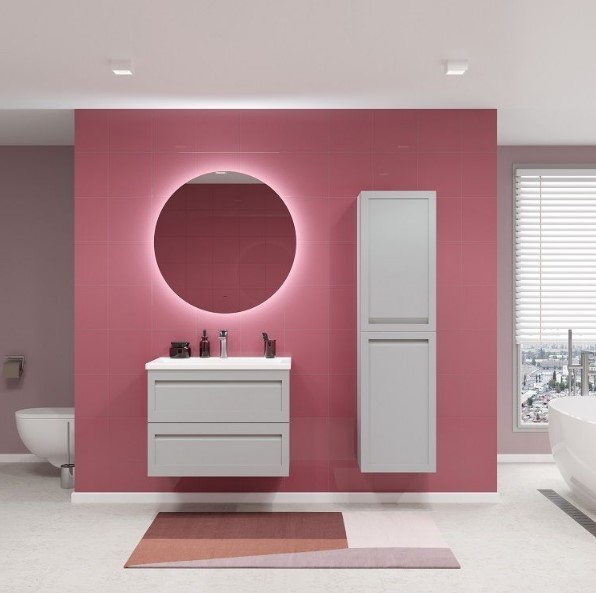 Пенал подвесной Art&Max Platino 40 см с двумя распашными дверцами, реверсивный, фурнитура Боярд с доводчиками, цвет - светло-серый матовый.