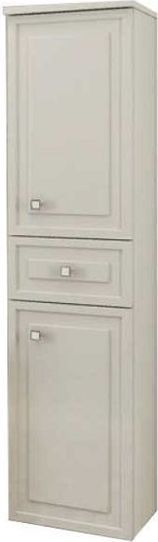 Подвесная шкаф-колонна в неоклассическом стиле. Оригинальные квадратные ручки кнопки. Верхняя, нижняя створки и ящик оснащены системой плавного закрывания. Фасады покрыты белой глянцевой эмалью. За каждой створкой по одной горизонтальной полке. Шкаф-колонна универсальна, может быть подвешена в правом и левом варианте.