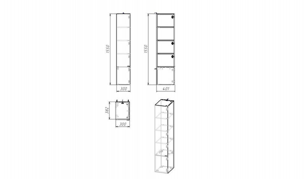 Пенал подвесной EvaGold Tai EG010429 401x1550x300, цвет белый.