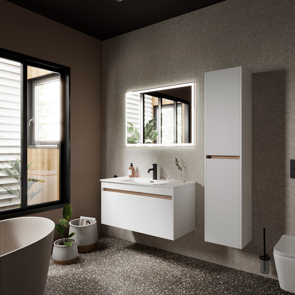 Шкаф-пенал SANCOS Smart подвесной белый, две дверцы, петли с доводчиками, расположение петель R/L.