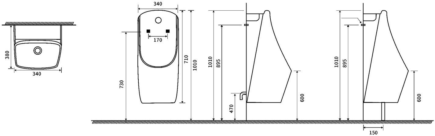 Писсуар подвесной SantiLine SL-6004MG (подвод воды скрытый) серый матовый - фото