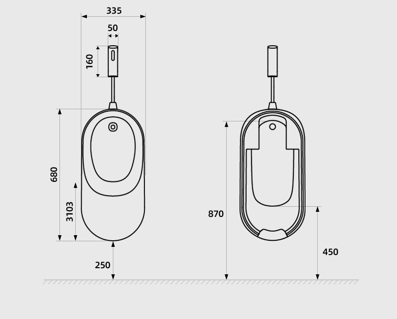 Писсуар подвесной SantiLine SL-6008 с внешним подключением, цвет белый.