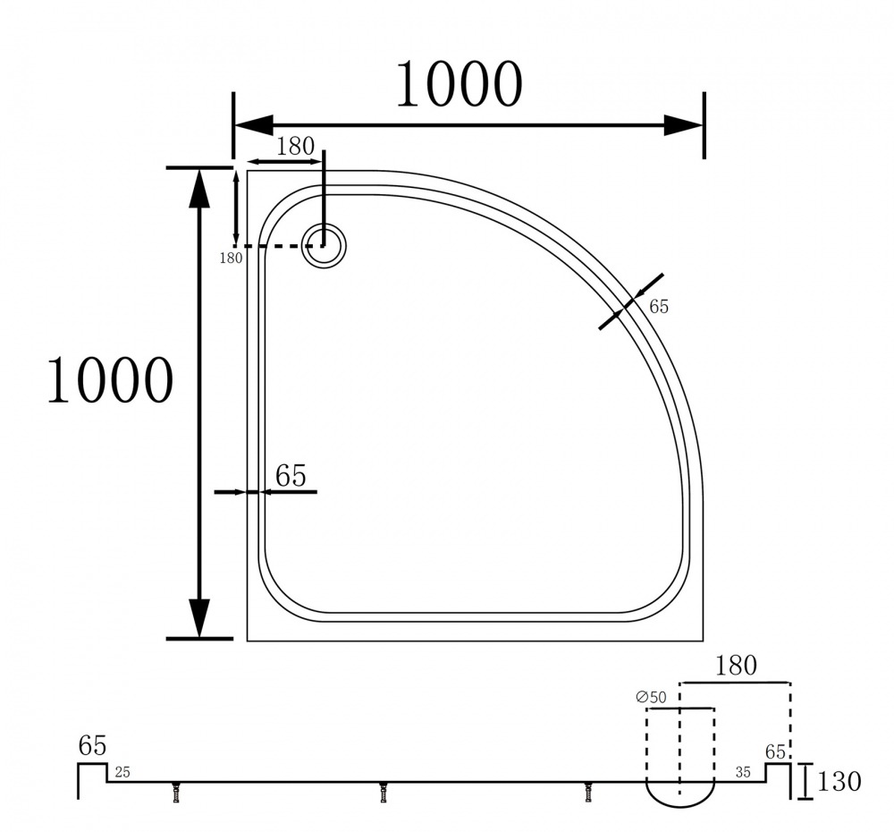 Душевой поддон Abber AD3A100, металлические ножки, каркас и сифон в комплекте, размер 1000х1000х130 мм, материал акрил. Цвет белый.