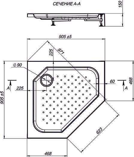 Поддон акриловый Nova Penta, размер 900х900х150 мм, материал акрил(АБС+ПММА), цвет белый.