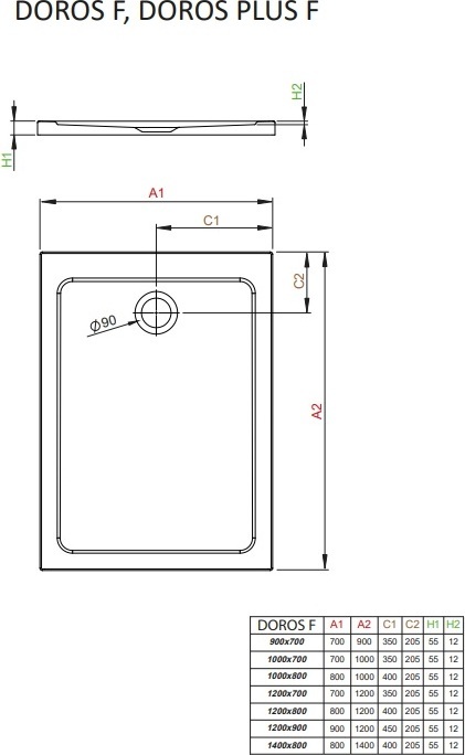 Душевой поддон Radaway Doros Plus F 1200*900*55 мм. Цвет - белый, материал - акрил. Отверстие под сифон - 90 мм.