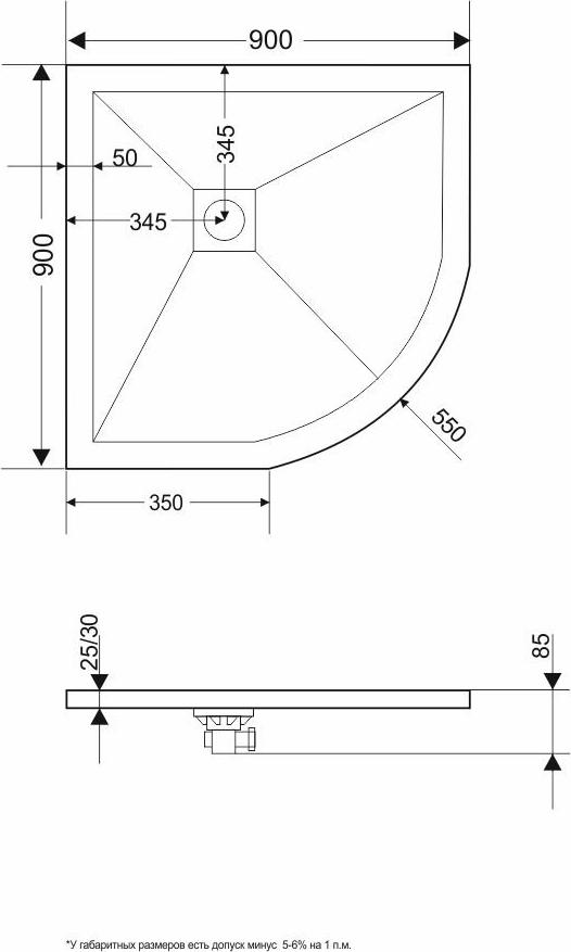 - Технический уклон поддона для стока воды (на фото изображен более выраженно для понимания направления слива воды)