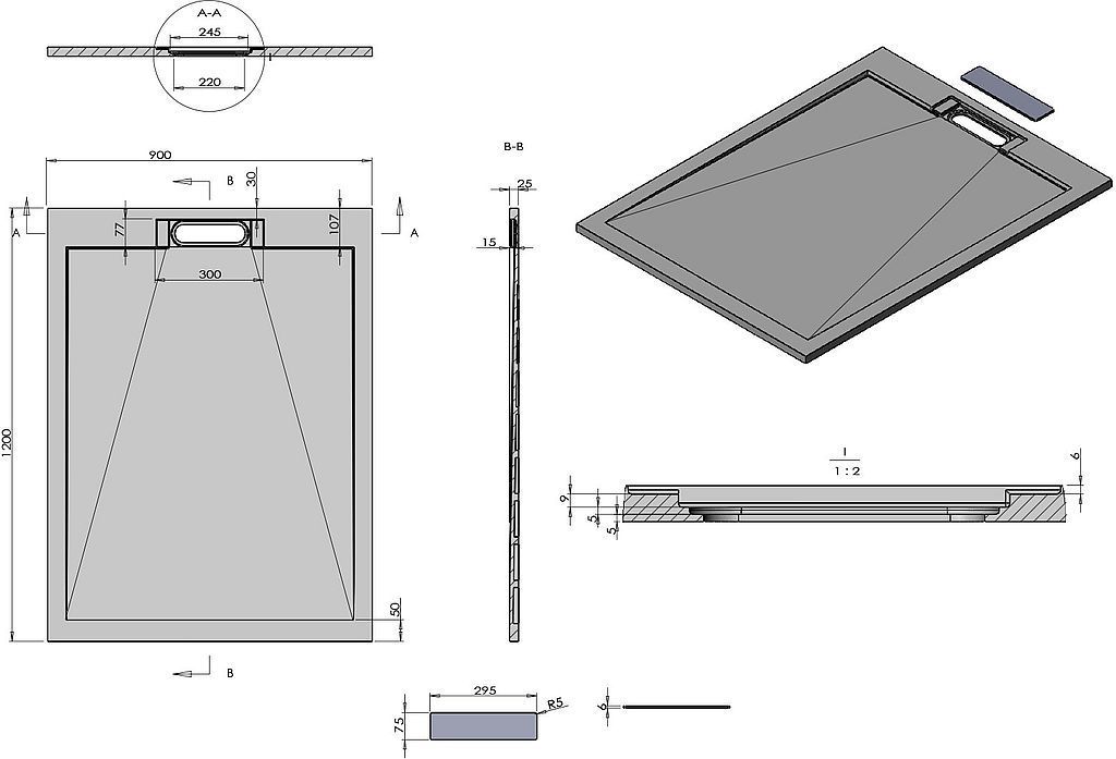 Характеристики Поддон Vincea (VST-4SRL9012W)