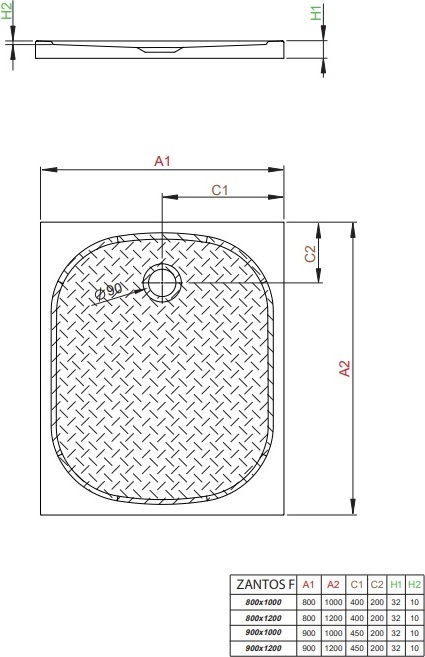 Душевой поддон Radaway Zantos F 1000*800*32 мм. Цвет - белый, материал - литьевой мрамор. Отверстие под сифон - 90 мм.