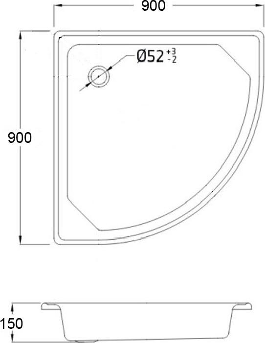 Поддон стальной Loranto Полукруг, размер 900х900х150 см, цвет белый.
