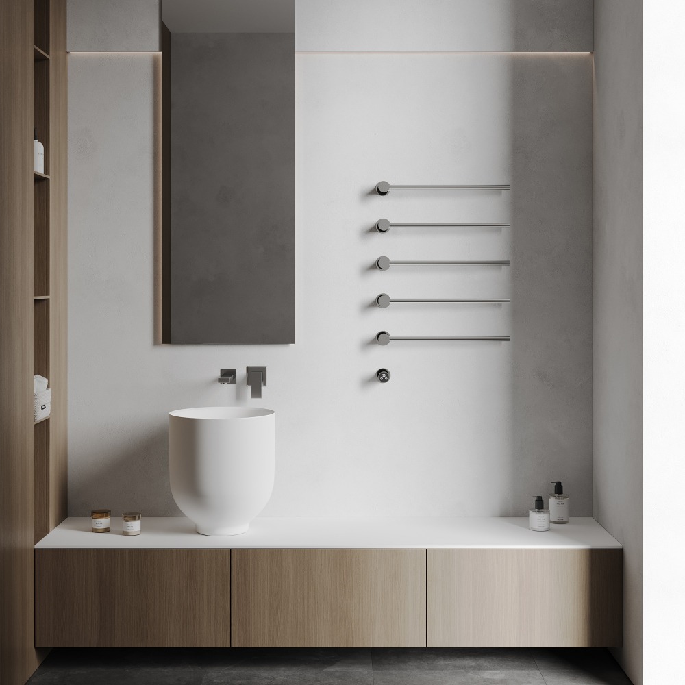 - Комфортный нагрев. Диапазон регулировки температуры 45−60 ∘С позволяет подобрать оптимальный режим для сушки полотенец и создания уютной атмосферы.