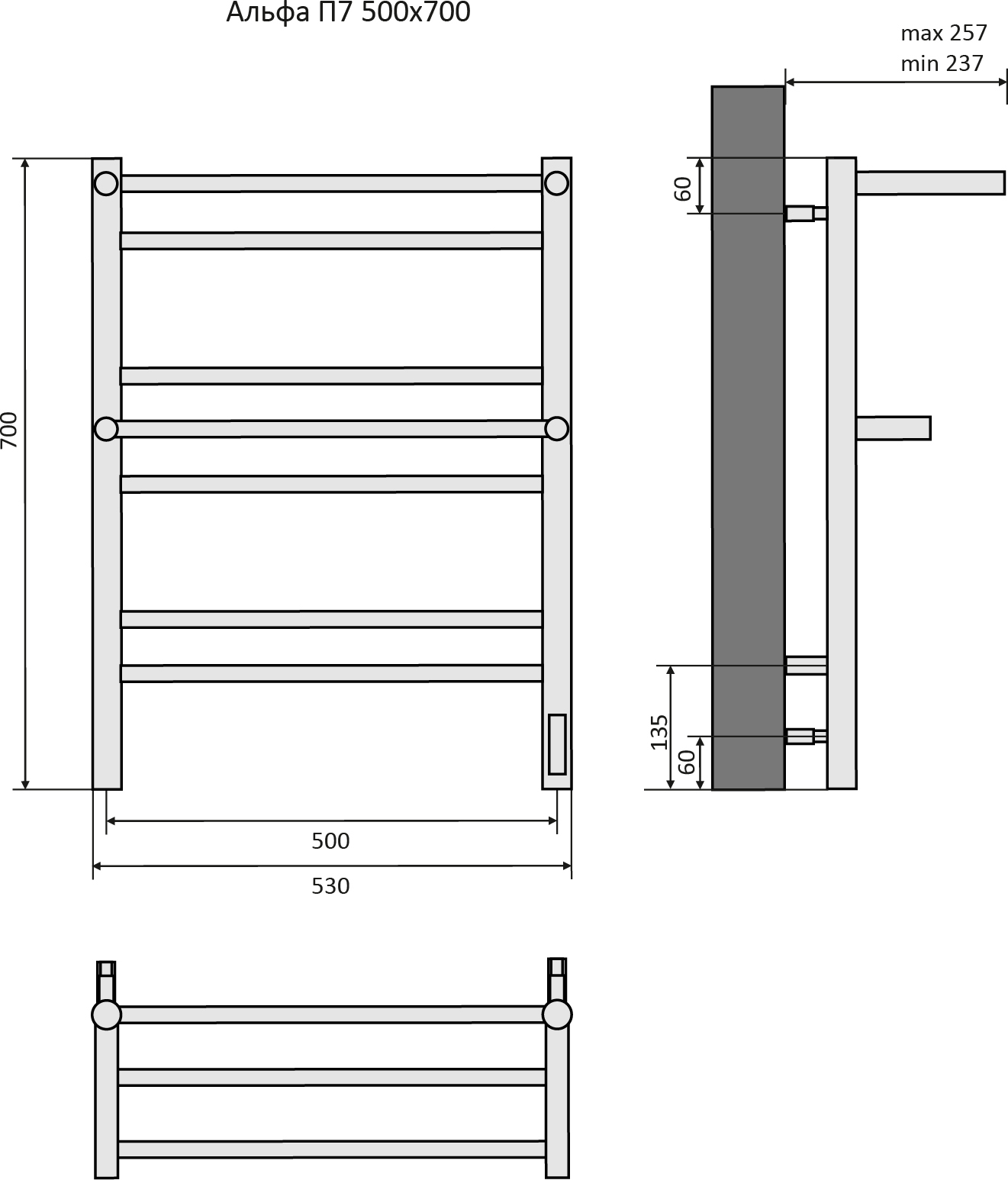 Полотенцесушитель электрический Aquatek Альфа с полкой П7 500х700 мм AQ EL RRP0770CH