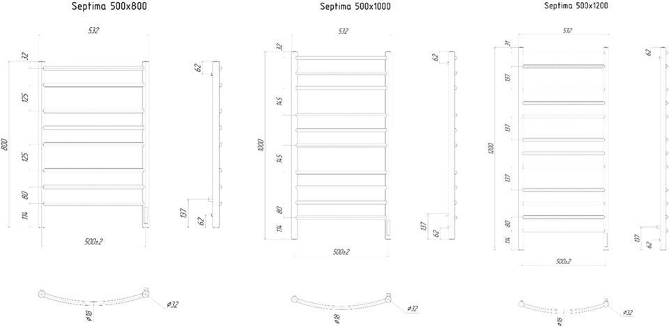 Полотенцесушитель электрический Ravak Septima, 2+3+3 перекладины, скрытое подключение, материал нержавеющая сталь, цвет хром.