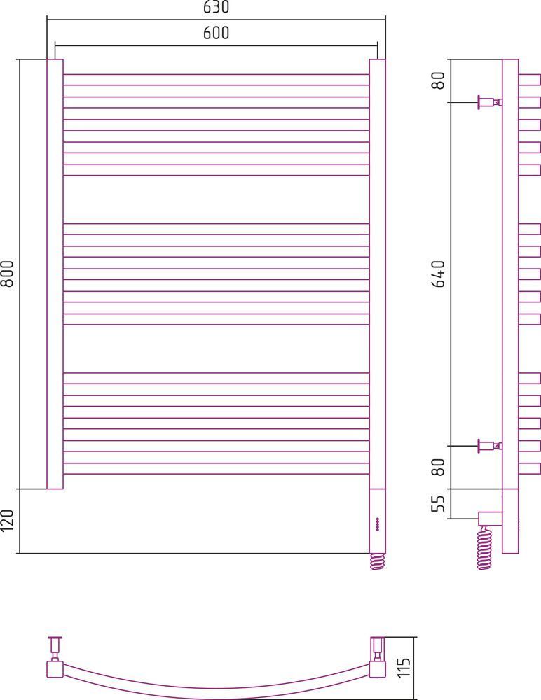 Полотенцесушитель электрический Сунержа Аркус 3.0 П15 800x600 мм 071-5705-8060 R, сатин