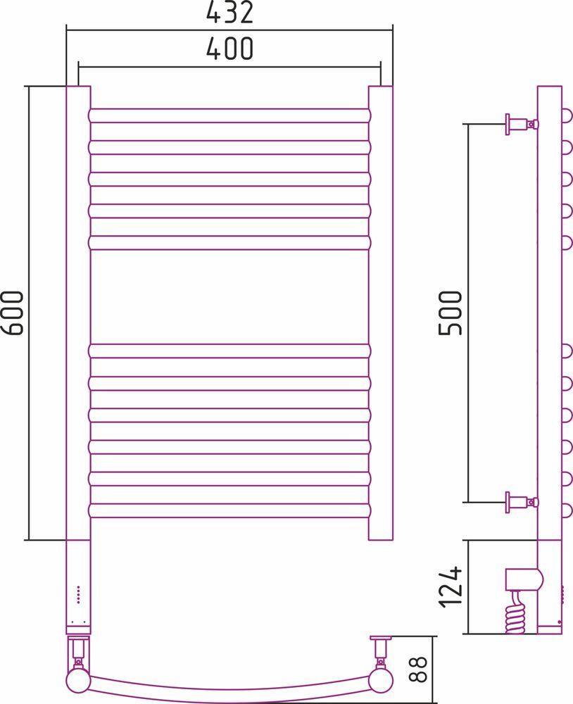 Электрический полотенцесушитель Сунержа Богема 3.0 600х400 мм, 11 перекладин(5-6). Мощность 300 Вт. Скрытое подключение.