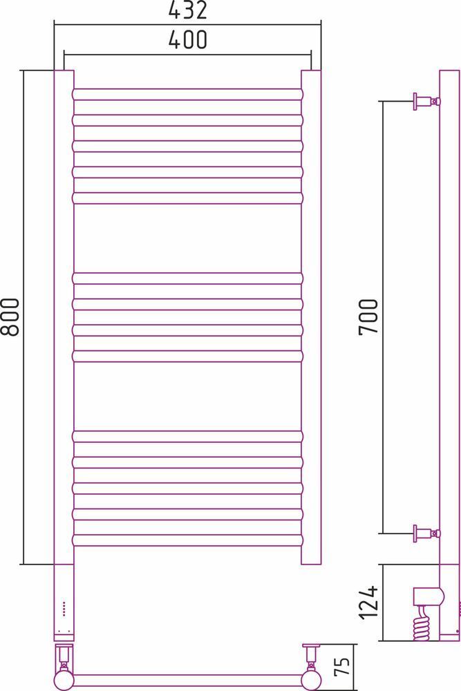 Полотенцесушитель электрический Сунержа Богема 3.0 П14 800x400 мм (прямая перемычка) 31-5804-8040 L, чёрный матовый