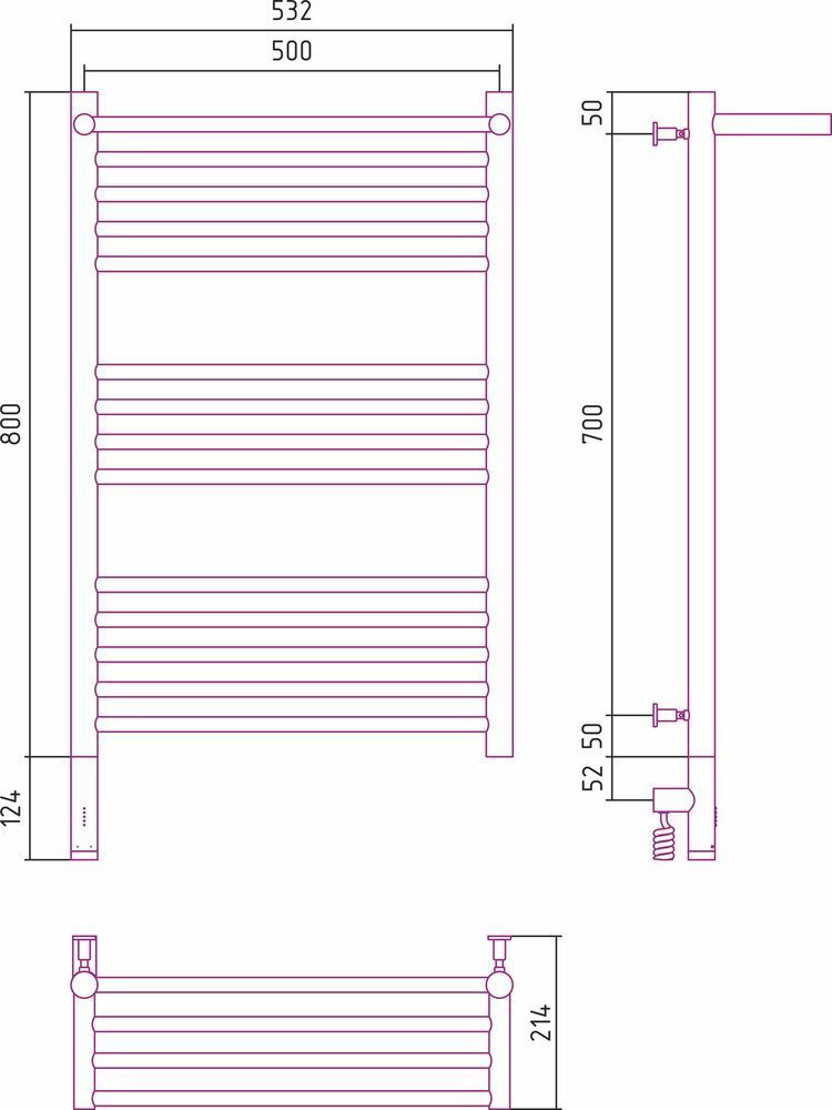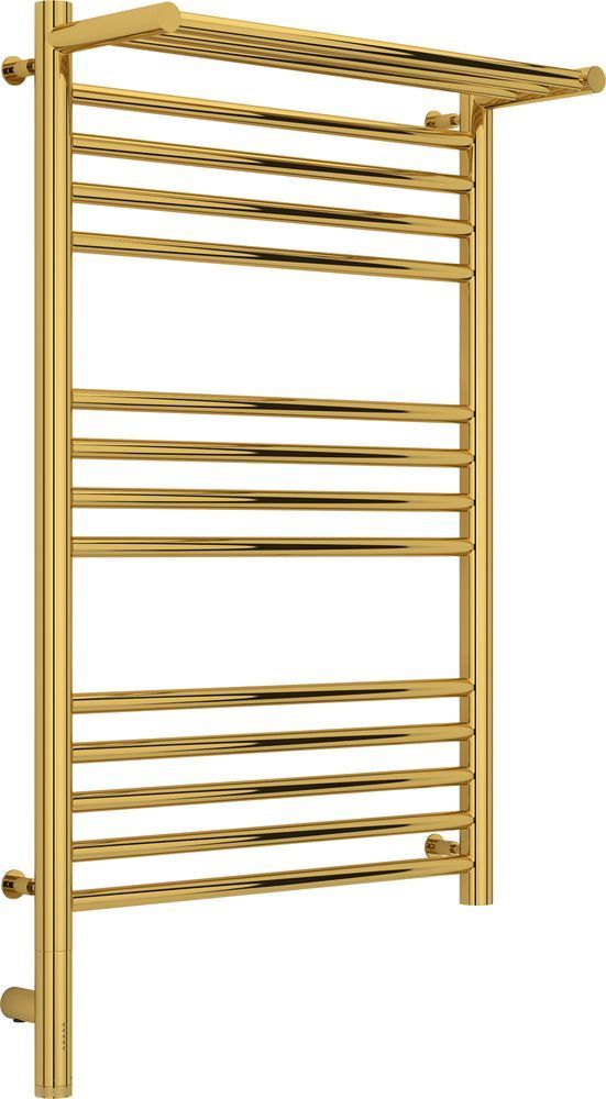 Электрический полотенцесушитель Сунержа Богема с полкой 3.0 800х500 мм, 14 перекладин(5-4-5). Мощность 300 Вт, цвет золото. Интегрированное в корпус скрытое подключение.