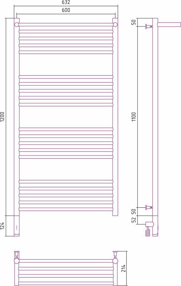 Электрический полотенцесушитель Сунержа Богема с полкой 3.0 1200х600 мм, 20 перекладин(5-5-5-5). Мощность 300 Вт, цвет сатин. Интегрированное в корпус скрытое подключение.