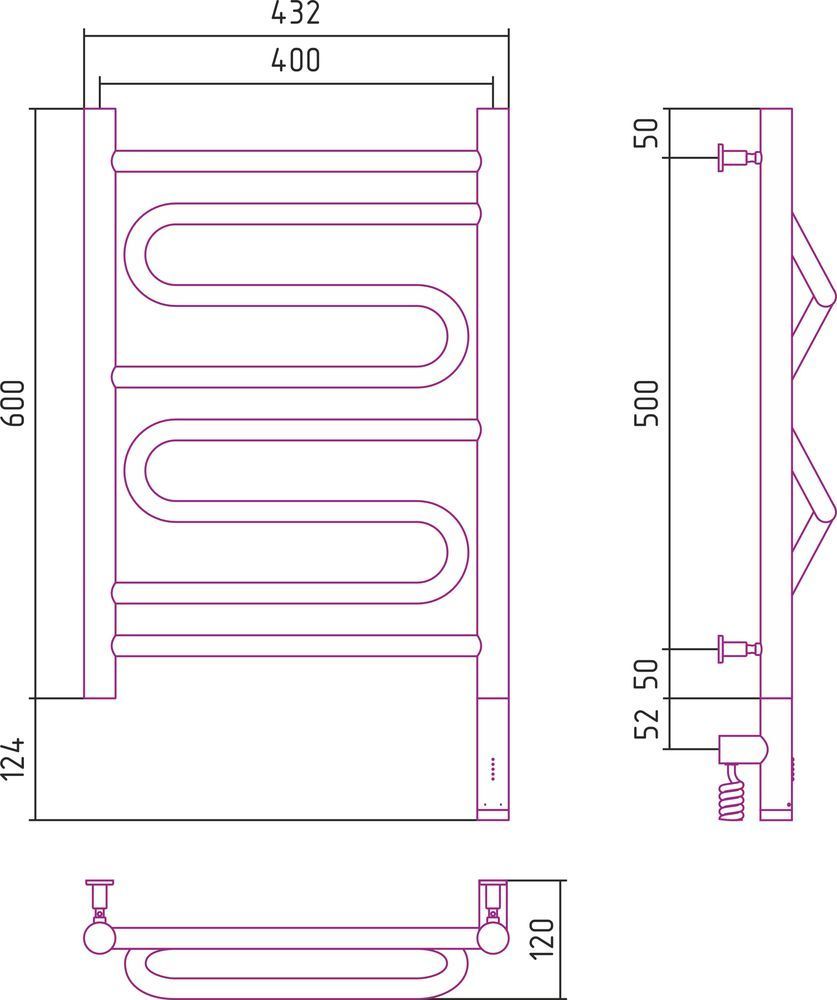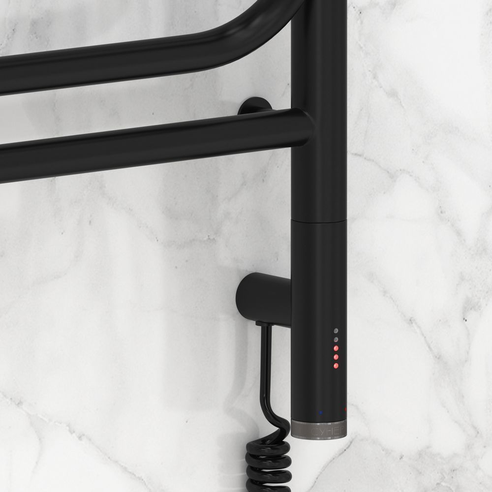 Полотенцесушитель электрический Сунержа Элегия 3.0, размер 600х400 мм, 8 перекладин. Мощность 300 Вт, цвет чёрный матовый. Интегрированное в корпус скрытое подключение.